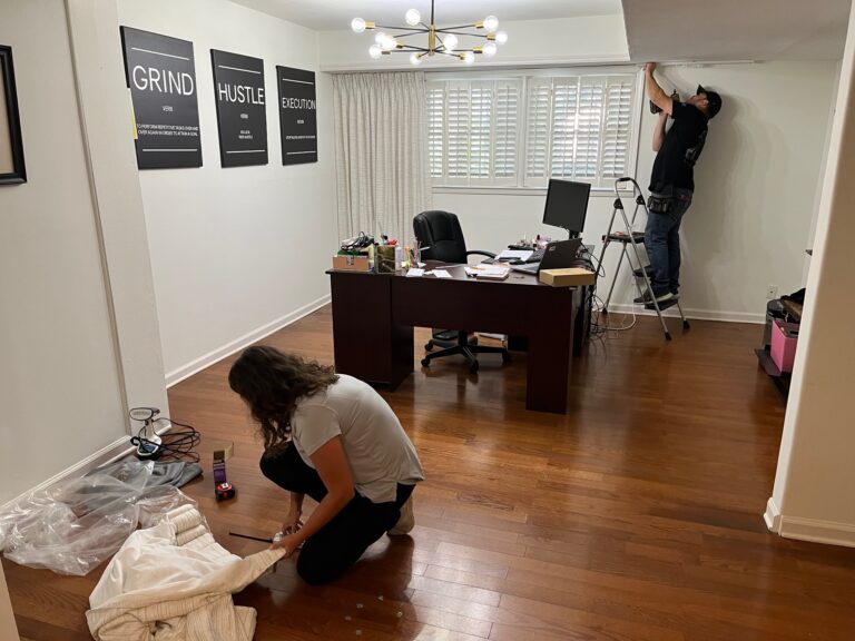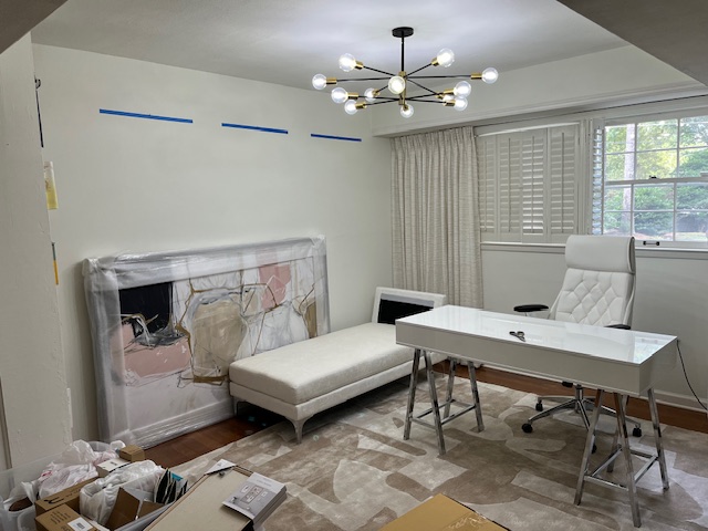 This project focused on creating a sophisticated and functional home office and family room design for a busy medical professional in Stockbridge, GA. The client’s goal was to have a workspace that promotes productivity while maintaining a luxurious and calming aesthetic.